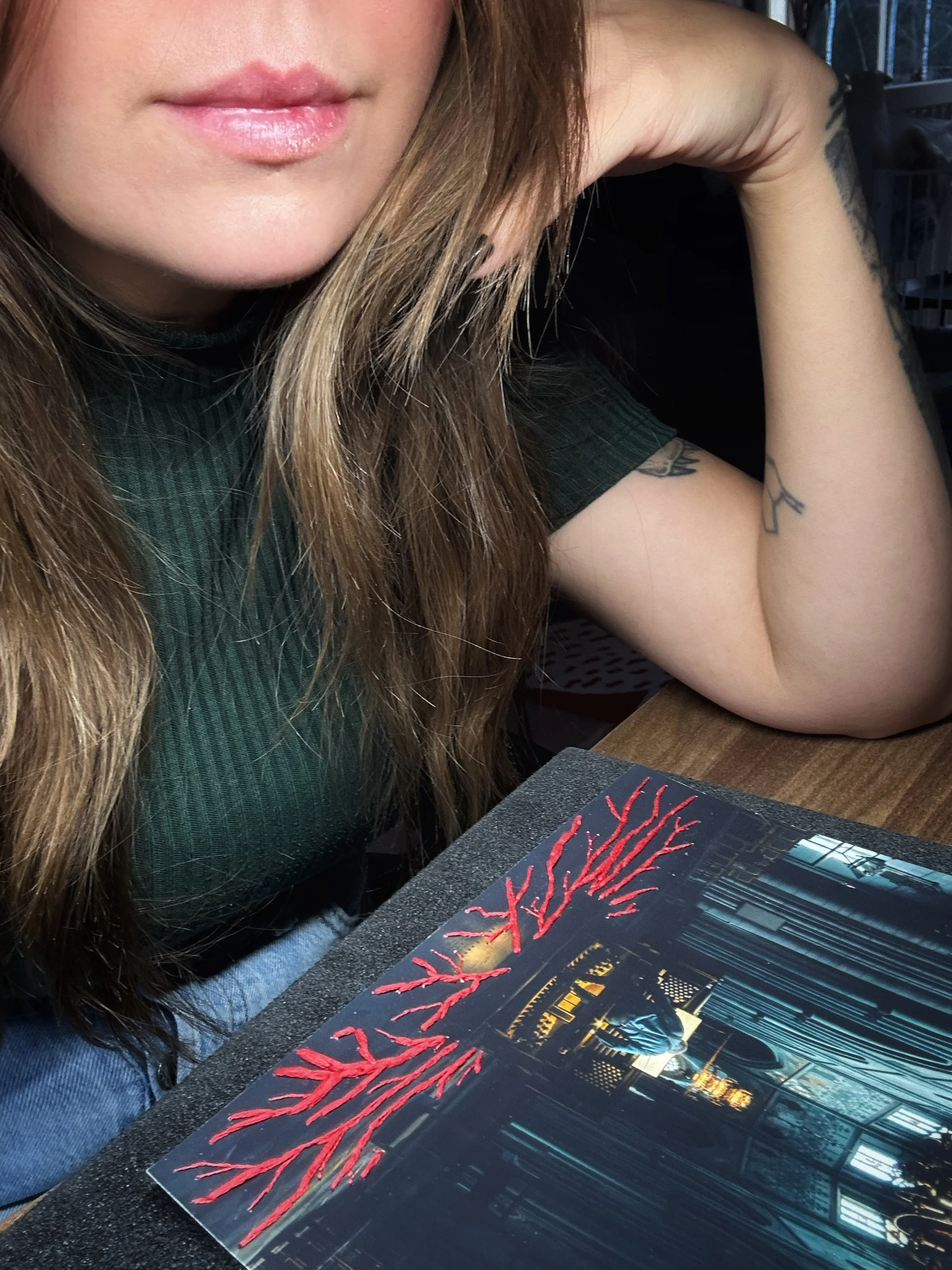I edited several versions of the raw, each time giving it a slightly different feel and to this day I still cannot pick my favourite version. One of the versions I created was lovecraftian inspired and which I lovingly titled ”the summoners exhaustion”. I did consider using this edit for the embroidery piece but it didn’t quite fit with what I had in mind, but never say never. I had a lot more ideas than I put to paper and given my love for this photograph I think it would be a great one to revisit in a few years time to see how far I’ve come.