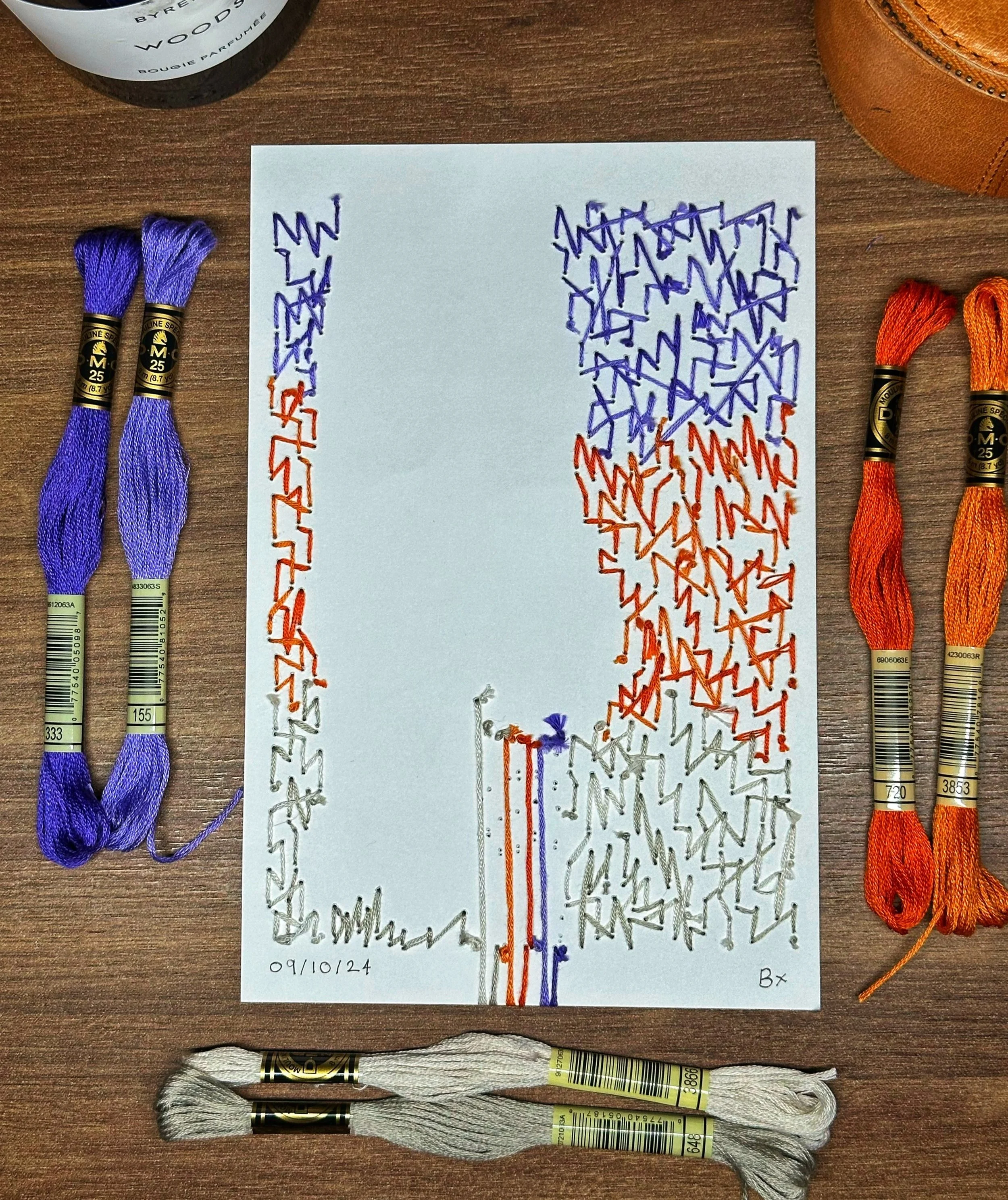 I trialed a few different approaches to get the thread to loop and lay nicely, ensuring the previous holes could not be seen, before finally settling on the end result.