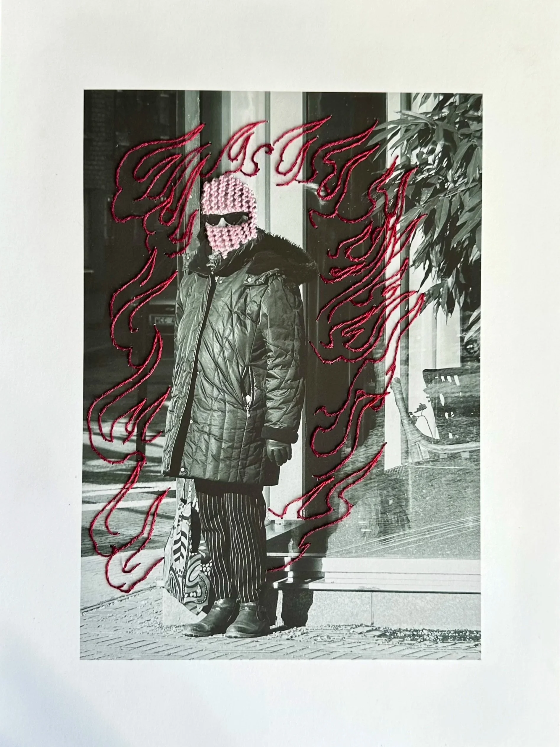 Embroidered using DMC embroidery threads 614, 615, 616 & 3689.